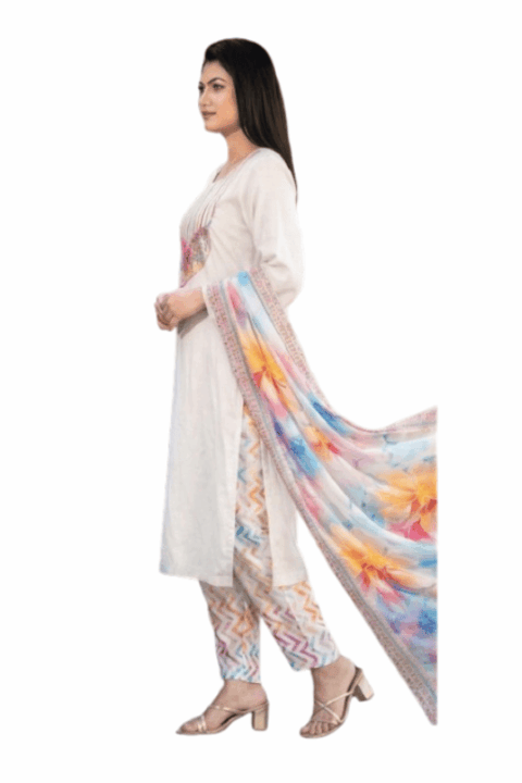 Rainbow Digital Printed Embroidered Salwar Kameez – Premium Reon | BD Made Fashion