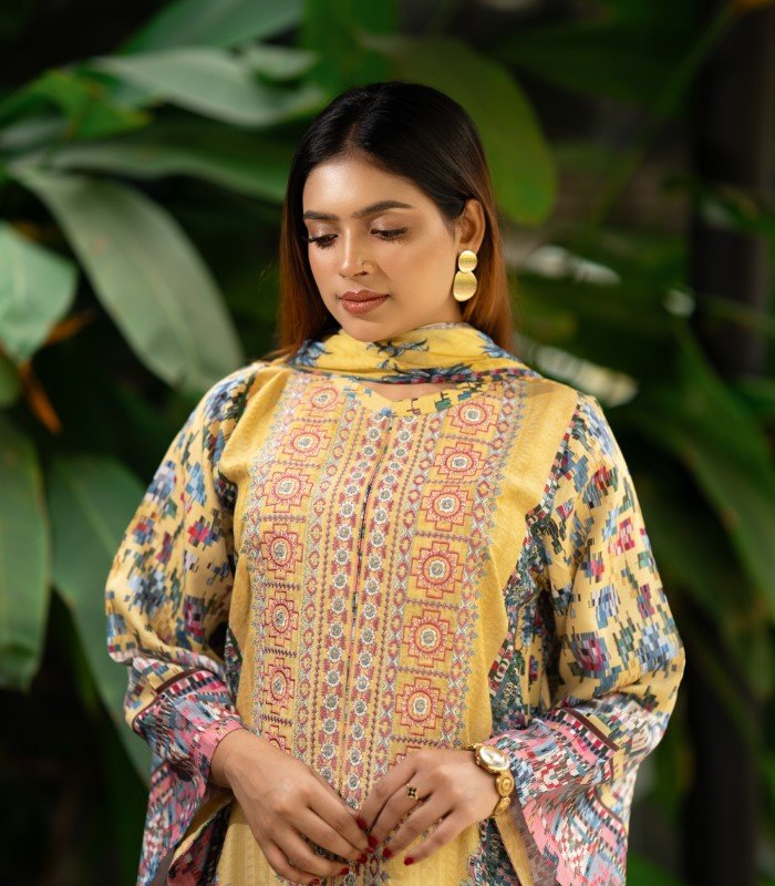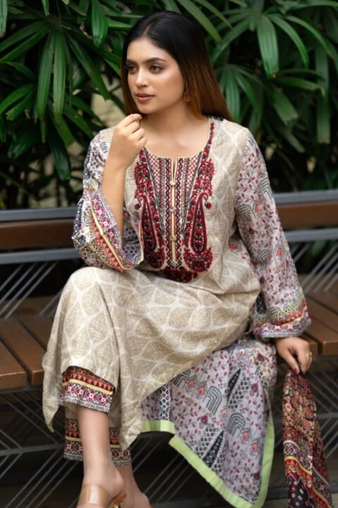The Akara Embroidered Cotton Salwar Kameez from BD Made Fashion is designed for women who value elegance and daily comfort. Crafted from premium Reon/Viscose fabric, the kameez is soft, lightweight, and breathable—perfect for Bangladesh’s warm climate.
