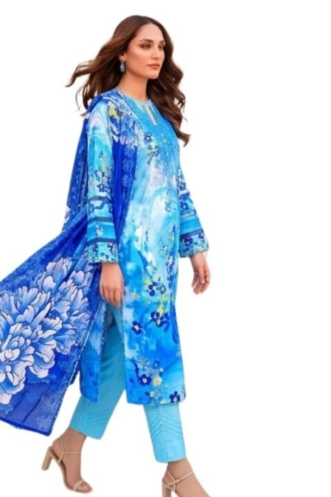 Add a touch of soft pastel elegance to your summer wardrobe with this Baby Blue Floral Printed Lawn Unstitched Salwar Kameez from BD Made Fashion, designed for comfortable, stylish, and versatile summer wear.