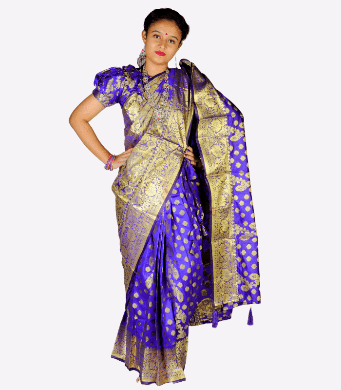 Attached Petticoat (Lehenga Style): Comfortable built-in inner layer eliminates the need for additional petticoats.
