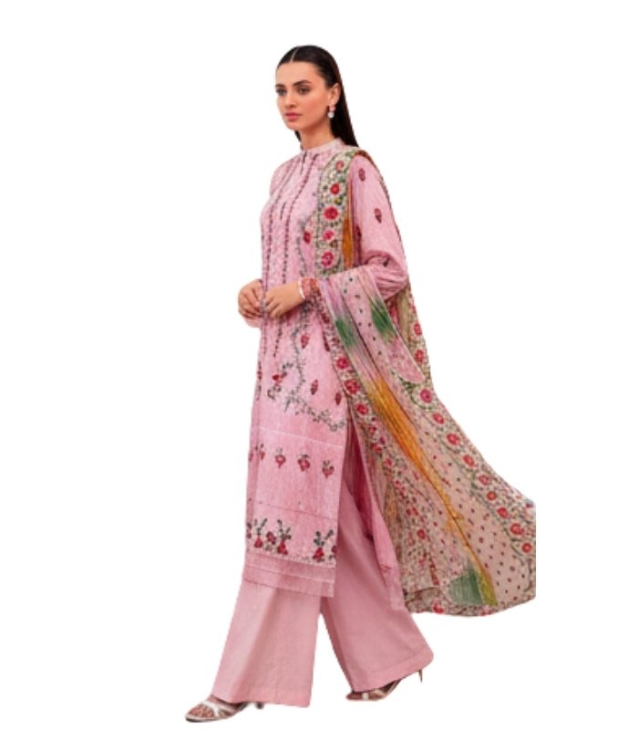 Elegant Blush Pink Unstitched Lawn Suit with Floral Embroidery