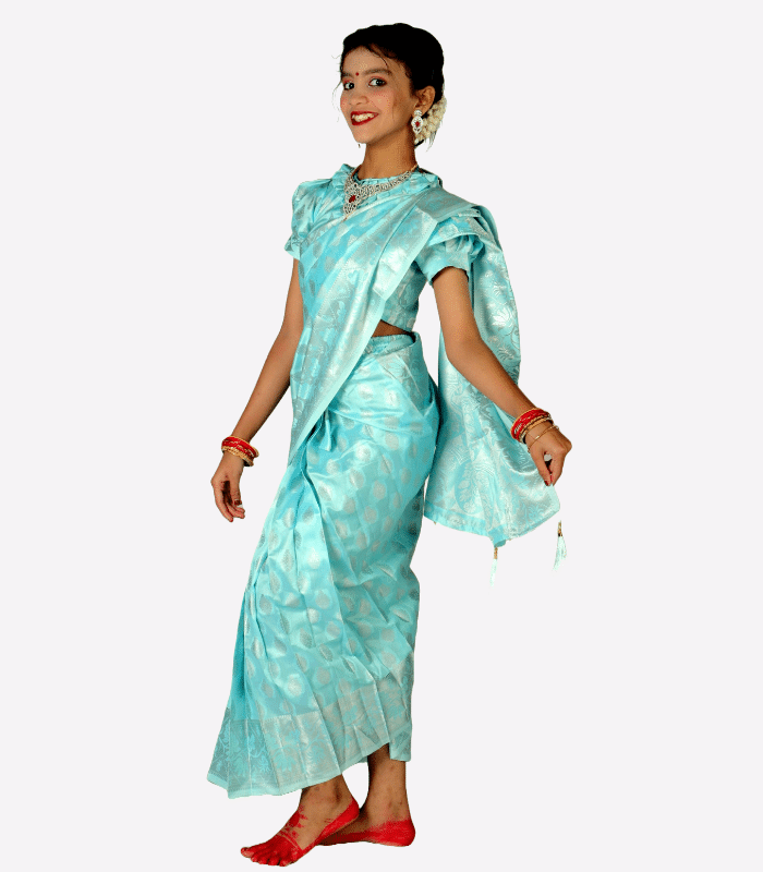Attached Petticoat (Lehenga Style): Built-in for comfort, convenience, and free movement.