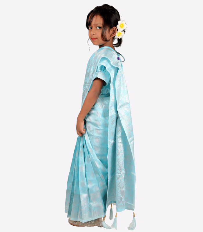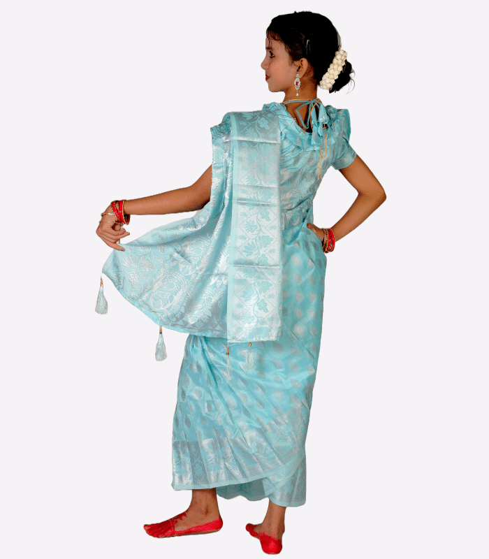 All fabrics are gentle on the skin, durable, and designed to retain their color and shine even after multiple washes. For a full view of available sizes, fabrics, and finishing, visit our Ready Saree Kids Collection.
