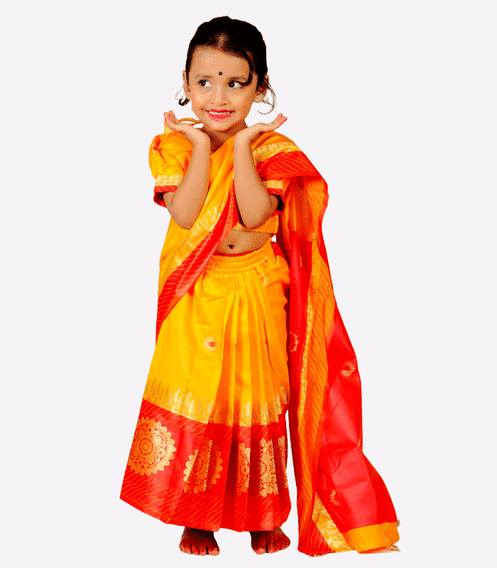 All fabrics are safe, soft on the skin, and designed to retain color and texture even after regular washes. For a complete view of fabric quality and designs, visit our Ready Saree Kids Collection.