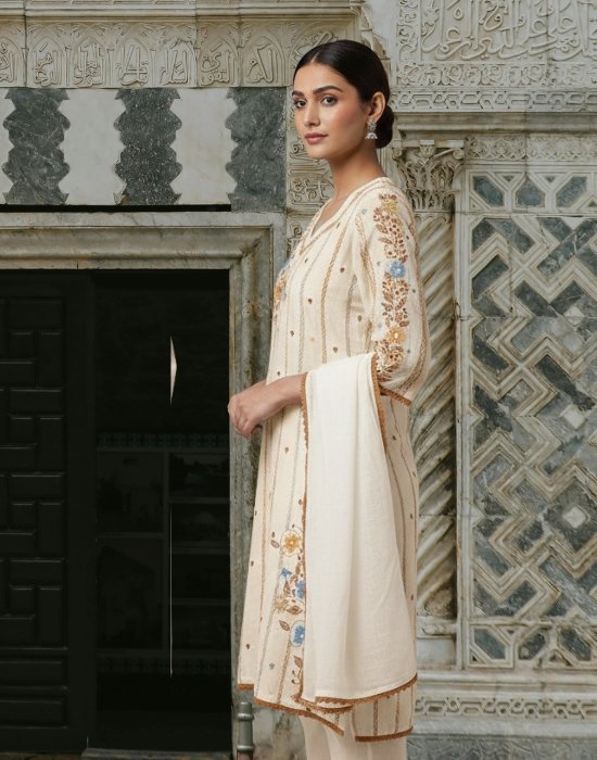 This is not a mass-produced outfit. It is created for women who prefer boutique three piece collections with exclusive handmade detailing.