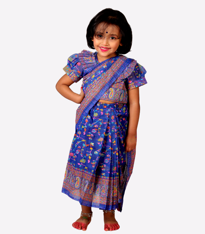 Designed for children aged 6 months to 10 years, it comes with a high-quality cotton / half silk fabric, precise finishing, and color-graded for lasting vibrance. The pre-stitched style eliminates pleating hassles, making it perfect for daily wear, festive occasions, or family gatherings.