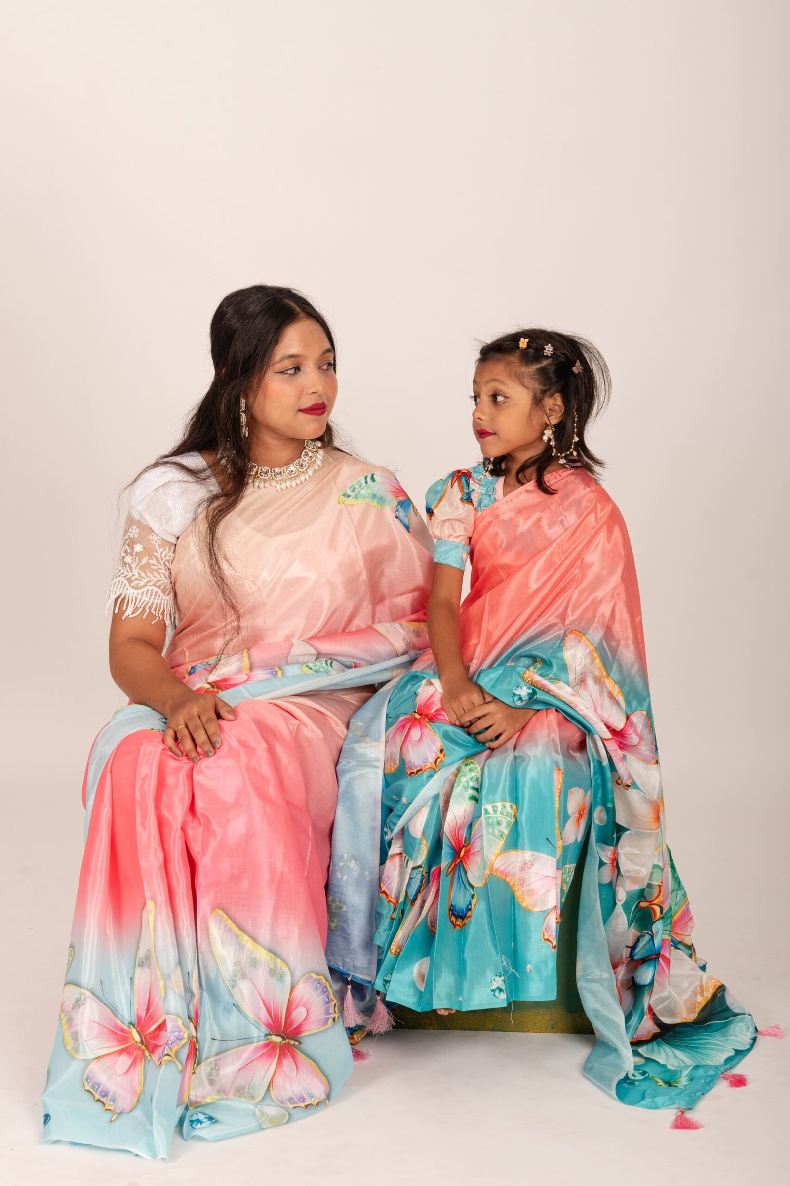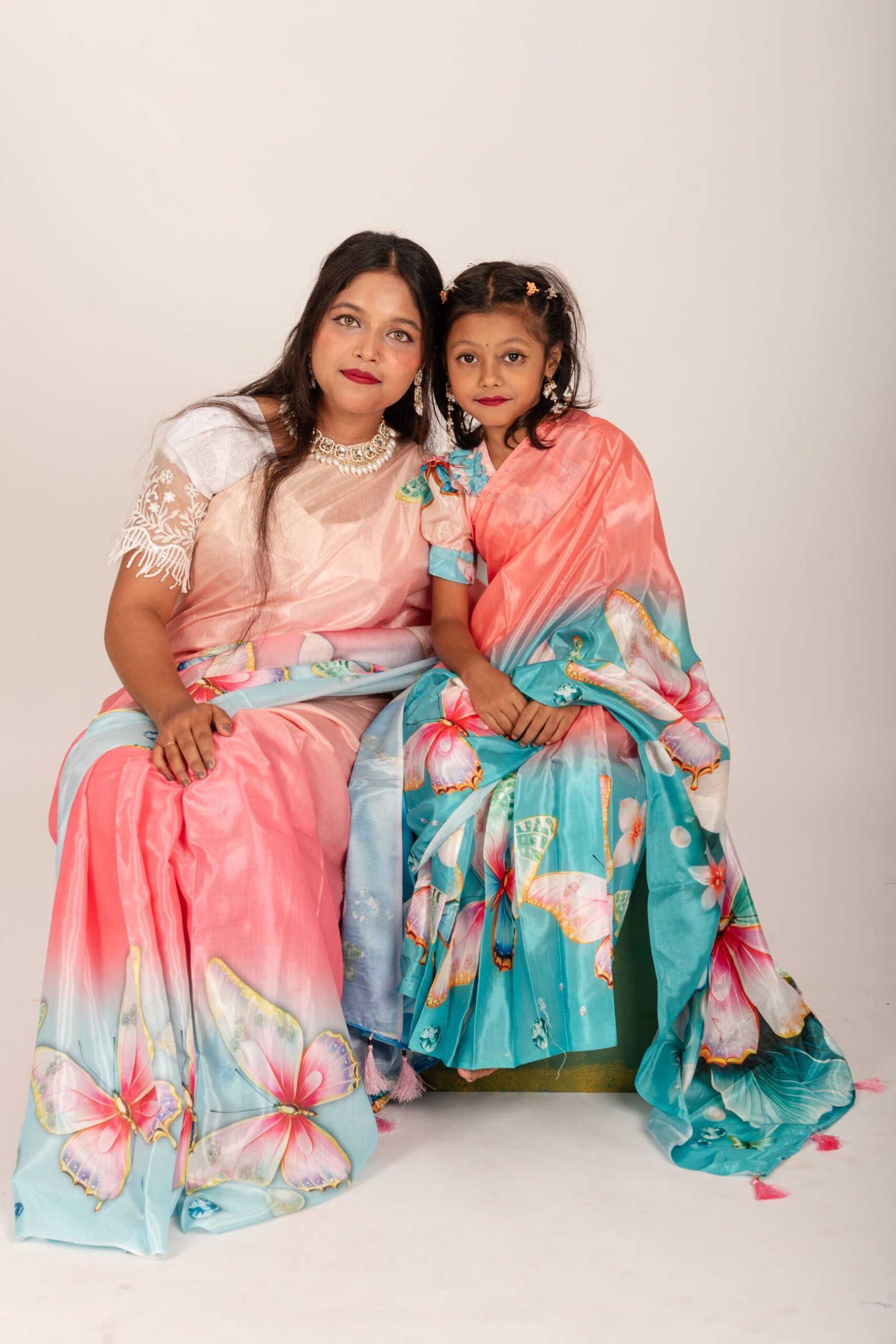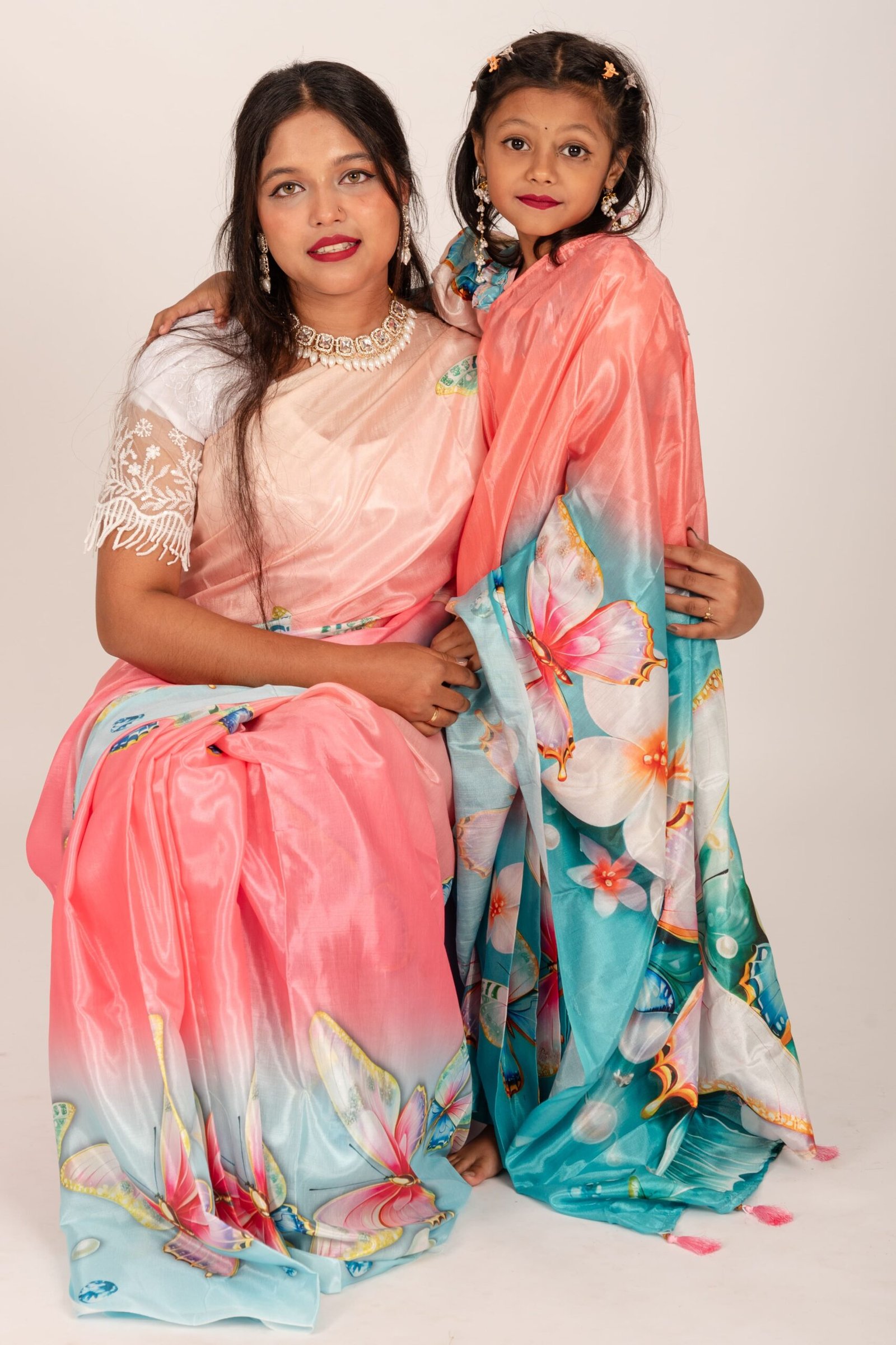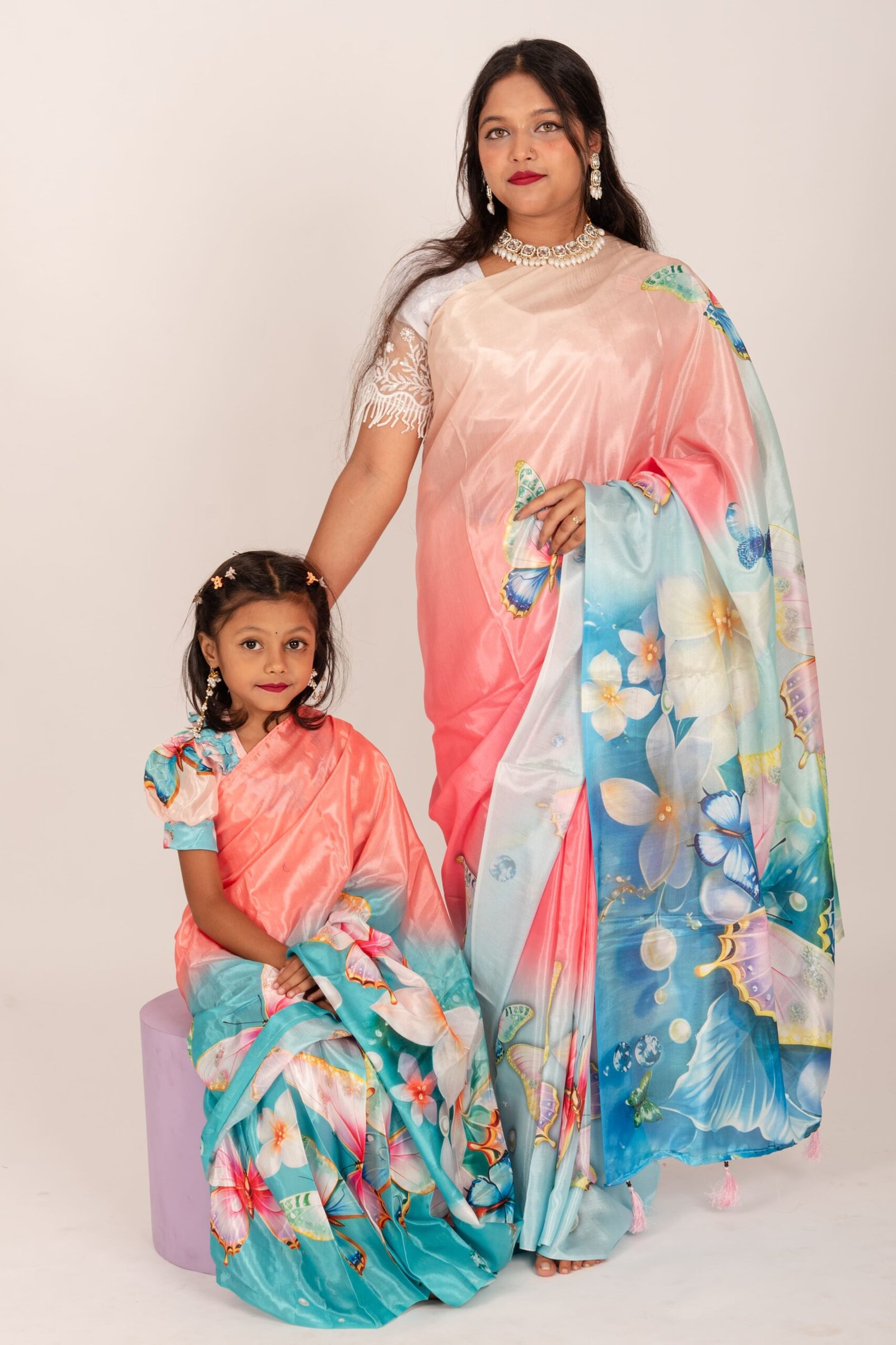 Digital Print Chunri Silk Kids Ready Saree – Trendy Festive Collection