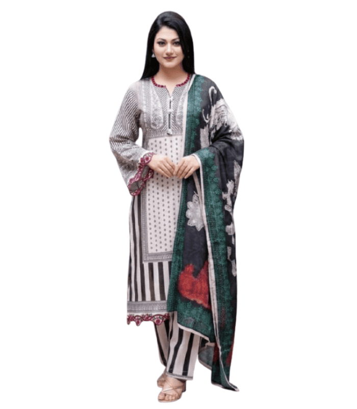 The matching Reon orna completes the outfit gracefully, while the AC cotton pants with elastic waistband ensure flexible fitting and all-day comfort. Easy to maintain with a normal wash using mild detergent, the Dora Embroidered Cotton Salwar Kameez is perfect for daily wear, office use, casual outings, or family gatherings, delivering elegance, premium quality, and practicality in one complete set from BD Made Fashion collections.