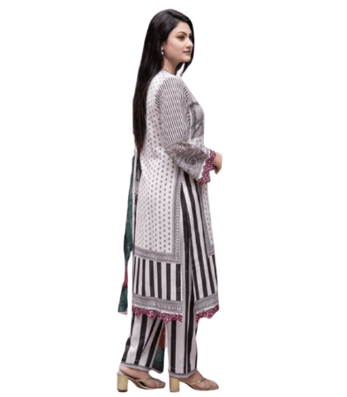 The Dora Embroidered Cotton Salwar Kameez by BD Made Fashion is crafted for women who love subtle elegance combined with everyday comfort. This stunning 3-piece set features a digitally printed kameez, a matching Reon orna, and a classic AC cotton pant—perfect for a polished and coordinated look.