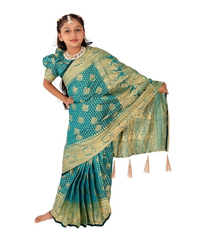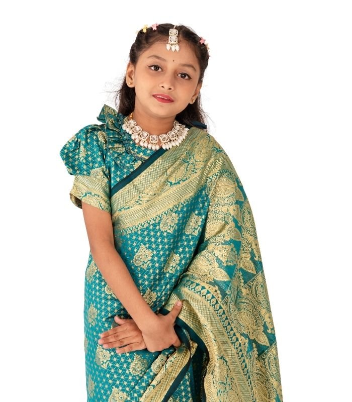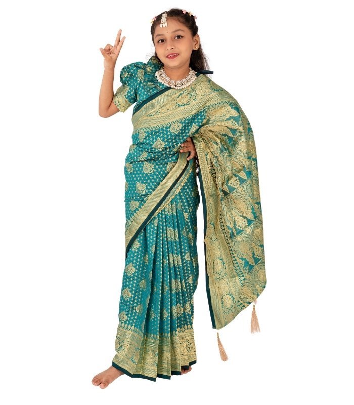 Elegant Pest Banarashi Katan Kids ready Saree – Luxury Silk Look