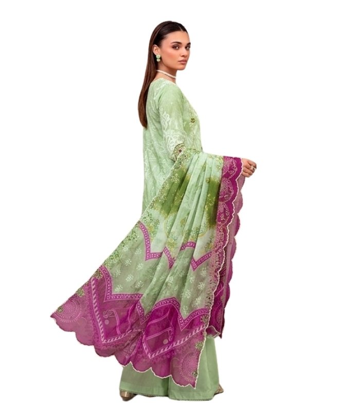 Pistachio Green Traditional Embroidered Unstitched Lawn 3 Piece Suit