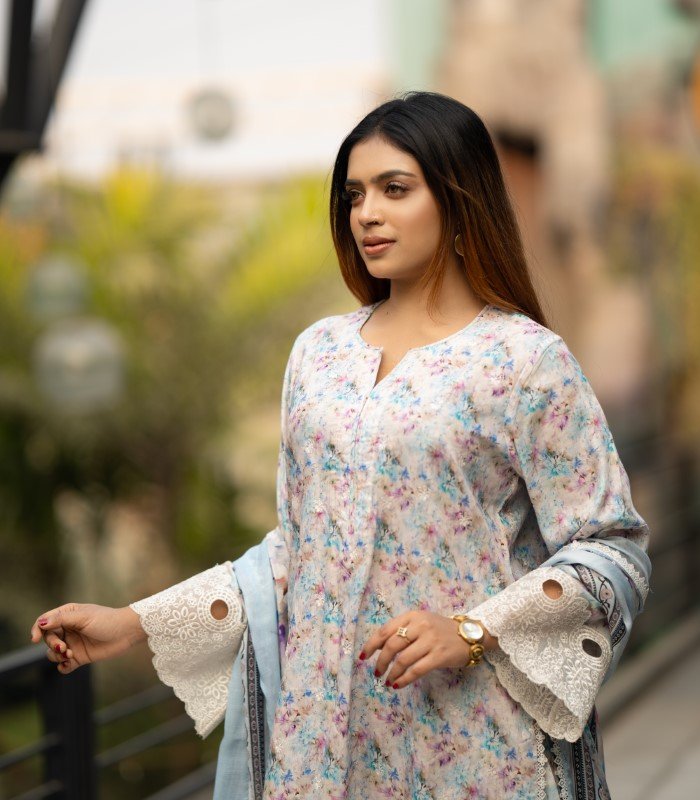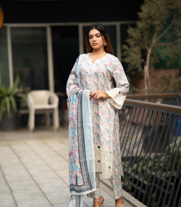 The Lavender Salwar Kameez by BD Made Fashion is a perfect blend of traditional elegance, comfort, and daily practicality for women. Crafted from premium Reon/Viscose fabric, this 3-piece set includes a digitally printed kameez, a matching Reon orna salwar, and a classic AC cotton pant, ensuring a complete and stylish ensemble suitable for multiple occasions.