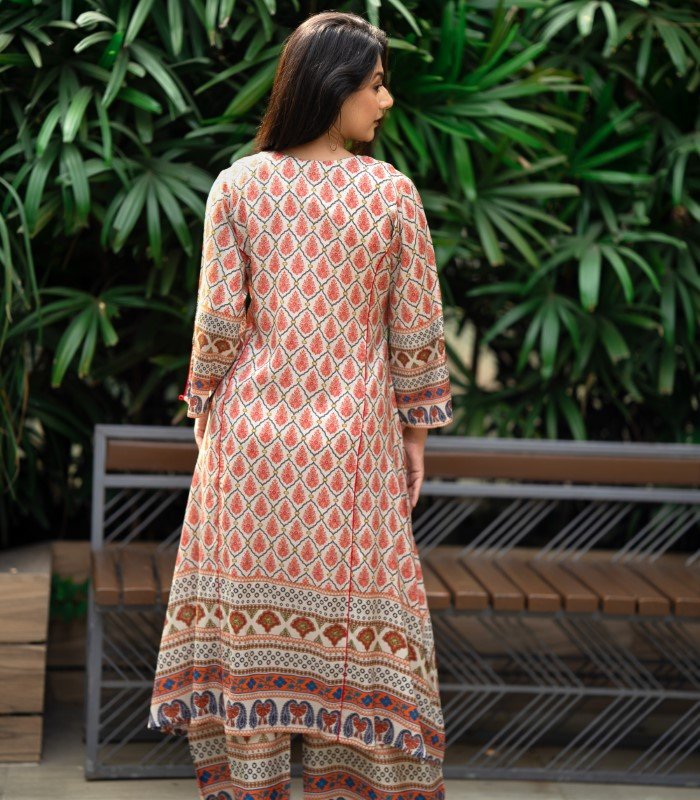 A: Kameez is made from premium Reon / Viscose, orna is Reon, and salwar is classic AC cotton with elastic waistband.