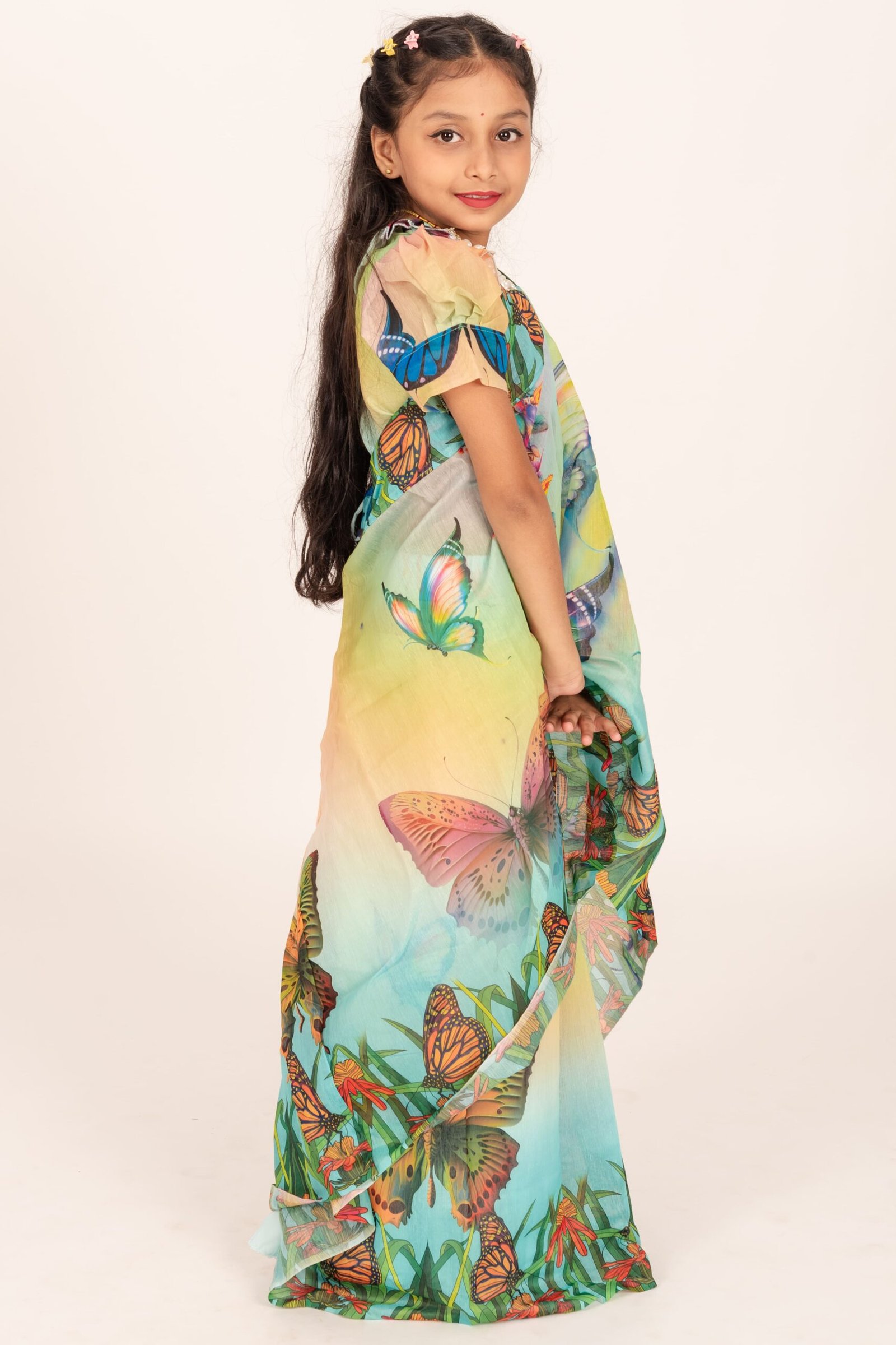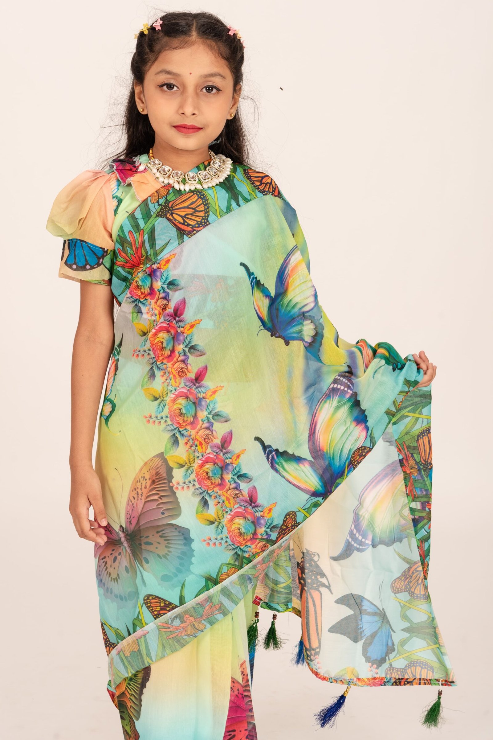 Multi Projapoti Chanderi Silk Kids Ready Saree – Premium Kids Collection