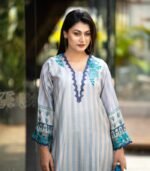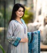 Made from premium Reon / Viscose fabric, the kameez is soft, lightweight, and breathable—ideal for Bangladesh’s warm climate. The embroidery on the chest, lower kameez, sleeves, and side of the orna adds a sophisticated and charming touch, beautifully enhancing the digital print.