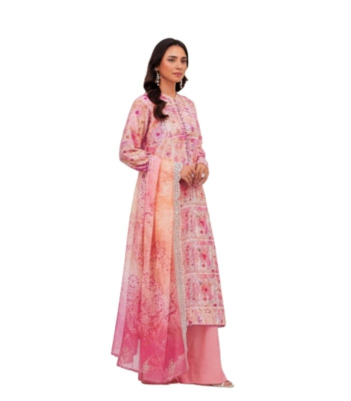 Upgrade your summer wardrobe with this elegant Peach Coral Embroidered Lawn Unstitched Salwar Kameez from BD Made Fashion, designed for graceful and stylish seasonal fashion.