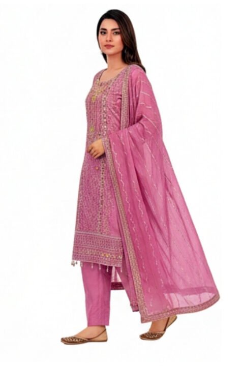 As a three-piece unstitched salwar kameez, the fabric allows full customization during tailoring. It can be styled into modern straight cuts, elegant A-line designs or traditional long kameez silhouettes depending on personal preference.