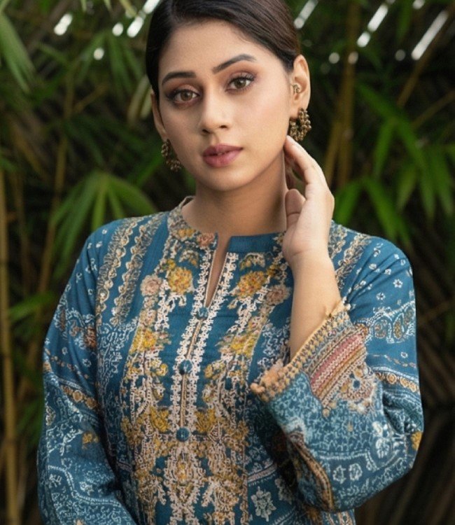 Made from premium Reon / Viscose fabric, the kameez is soft, breathable, and lightweight—perfect for Bangladesh’s warm climate. The chest features refined embroidery work, which adds sophistication to the digital printed design. A matching Reon orna enhances the outfit’s elegance, completing the coordinated 3-piece set.