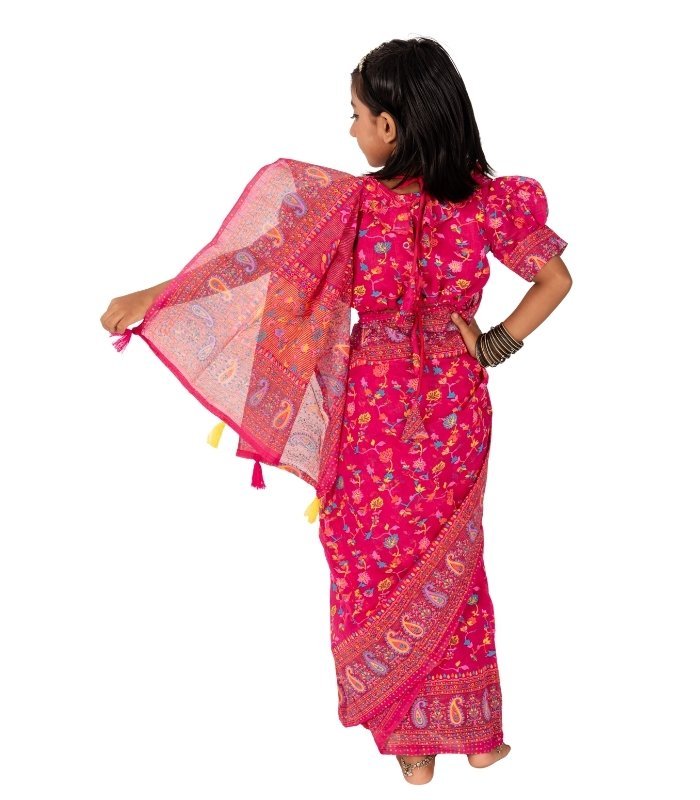 Pink Chunri Half Silk Kids Saree – Beautiful Rani Golap Print