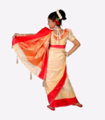 Every double-layer katan kids saree comes with a matching pre-stitched blouse, stitched to complement the red and off-white layers. The blouse is comfortable for long wear during festivals, weddings, or school cultural events. Custom sizing is available on request to ensure the perfect fit for your child.