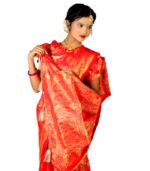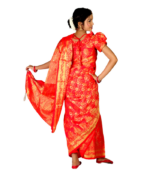 However, traditional sarees can be complicated for children, requiring careful pleating, wrapping, and adjustment, which often makes it difficult for little girls to wear them comfortably. The Red Jori Phool Katan Baby Ready Saree solves this problem by combining the timeless beauty of traditional sarees with a child-friendly, ready-to-wear design that ensures comfort, safety, and style for girls aged 06 months to 18 years.