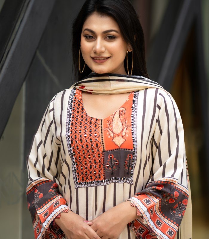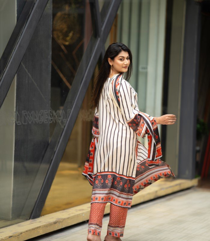 The Sequence Salwar Kameez from BD Made Fashion is designed for women who want elegance and comfort in one outfit. This 3-piece set includes a digitally printed kameez, coordinated Reon orna, and classic AC cotton salwar, creating a polished and versatile look for multiple occasions.
