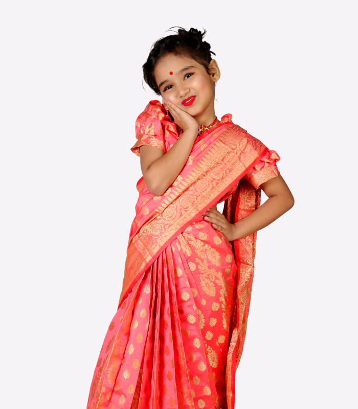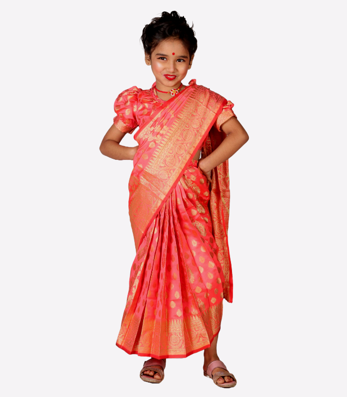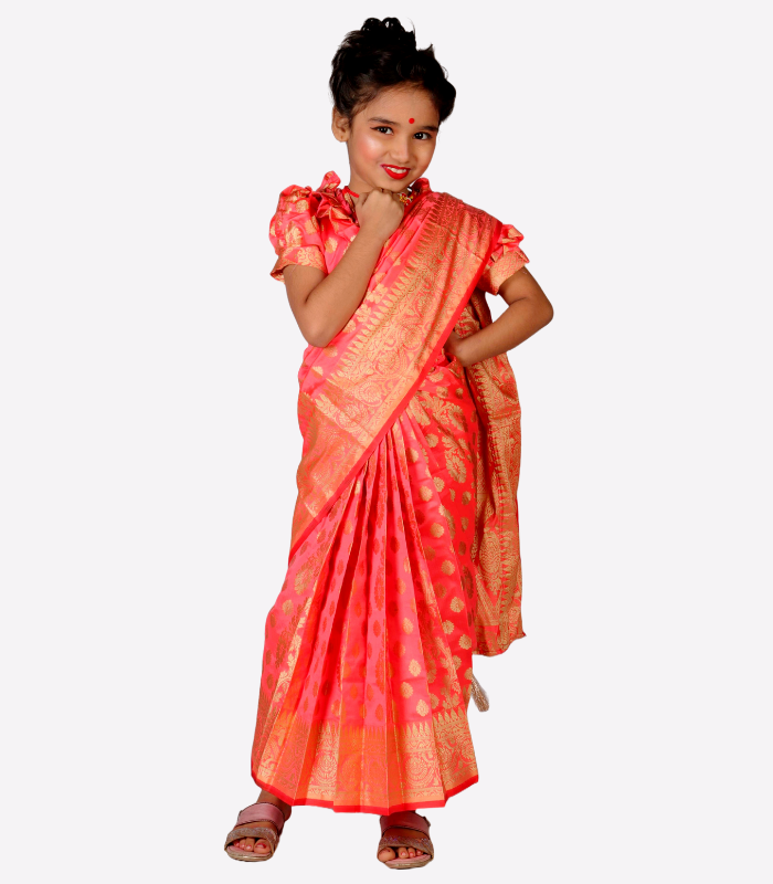 From toddlers to teenagers, this saree ensures comfort, fit, and traditional elegance at every stage of growth.