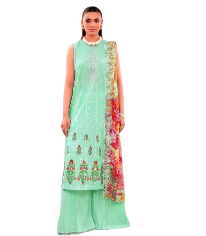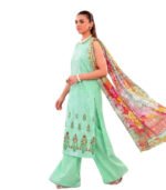 Mint Aqua Digital Printed Embroidered Unstitched Lawn 3 Piece Suit