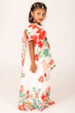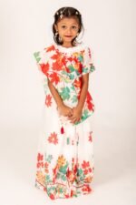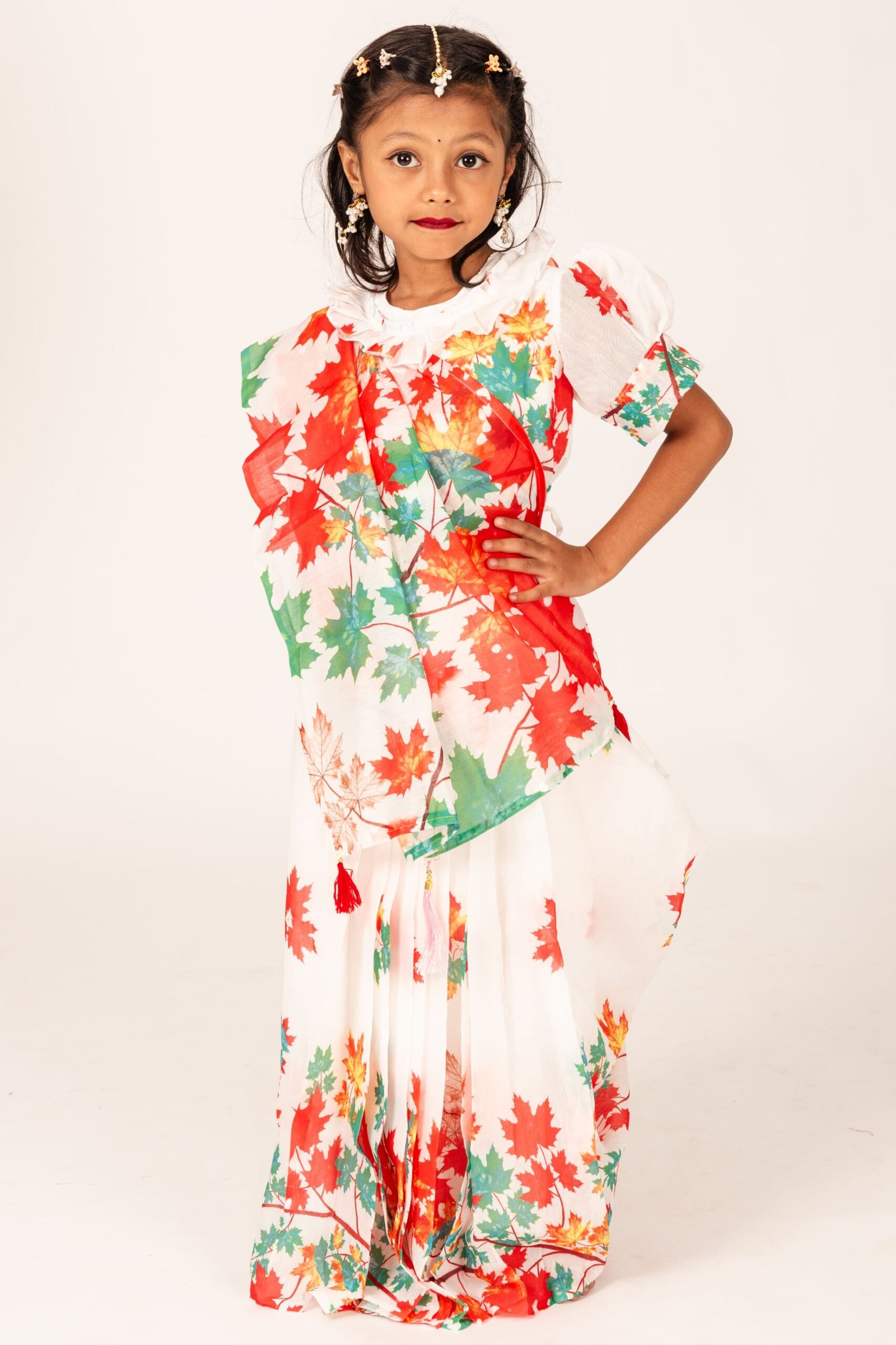 White Chanderi Silk Chenchuri Leaf Kids Ready Saree – Premium Kids Collection